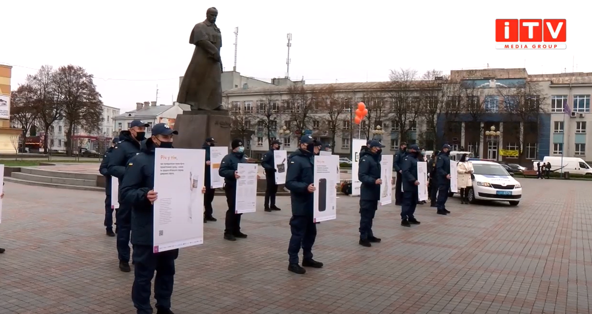 До акції на майдані Незалежності долучилися поліцейські та працівники служби судової охорони. Мета акції – привернути увагу до проблеми поширення та замовчування домашнього насильства.