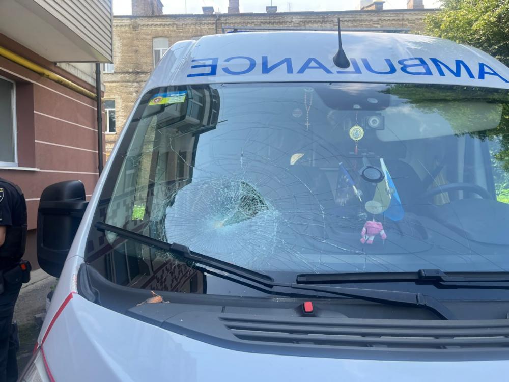 Коли після надання допомоги працівники «швидкої» вийшли на вулицю, дебошир взяв у руки шматок будівельної цегли та кинув нею в лобове скло службового автомобіля медиків.
