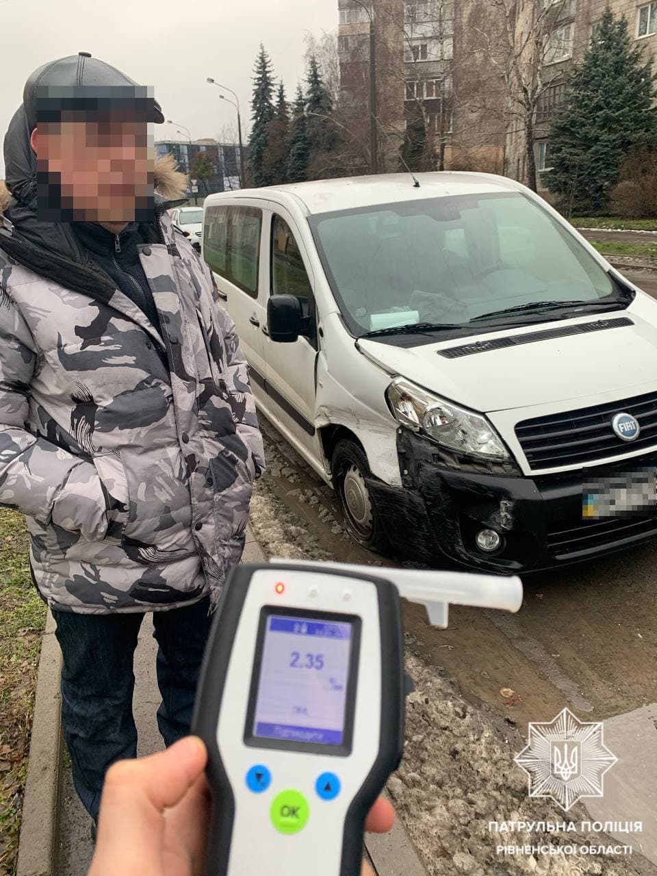 Охоронці порядку чоловіка затримали та застосували кайданки. Під час спілкування патрульні помітили явні ознаки алкогольного сп’яніння. Результат огляду — 2.35 проміле.