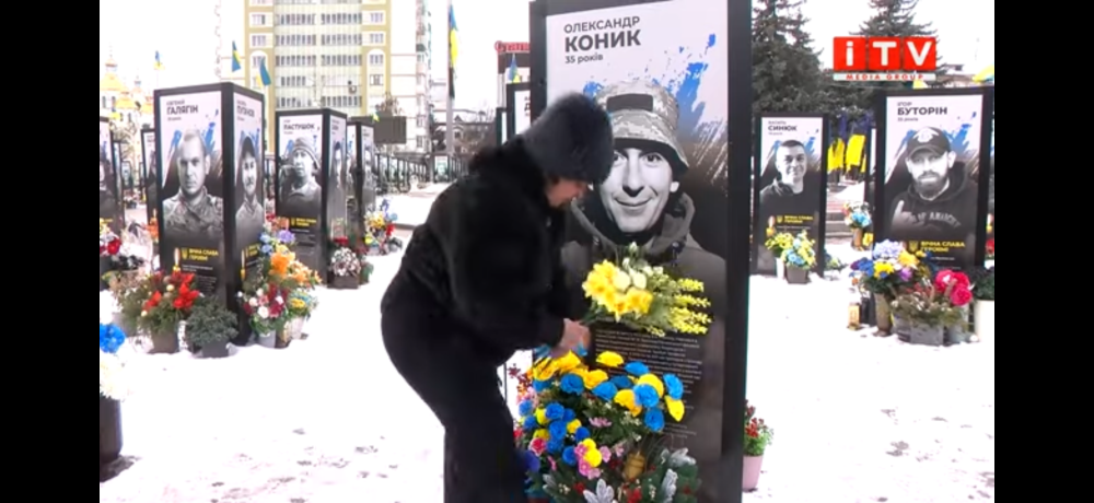 Руслана Коник принесла букет до портрета свого сина. Саме звідси нещодавно невідомі вкрали плетений кошик та вазу з квітами. А кілька тижнів тому жінка, будучи напідпитку, розтрощила стели із портретами Героїв на майдані незалежності у Рівному. Про інцидент мама загиблого військовослужбовця розповідає, не стримуючи сліз.