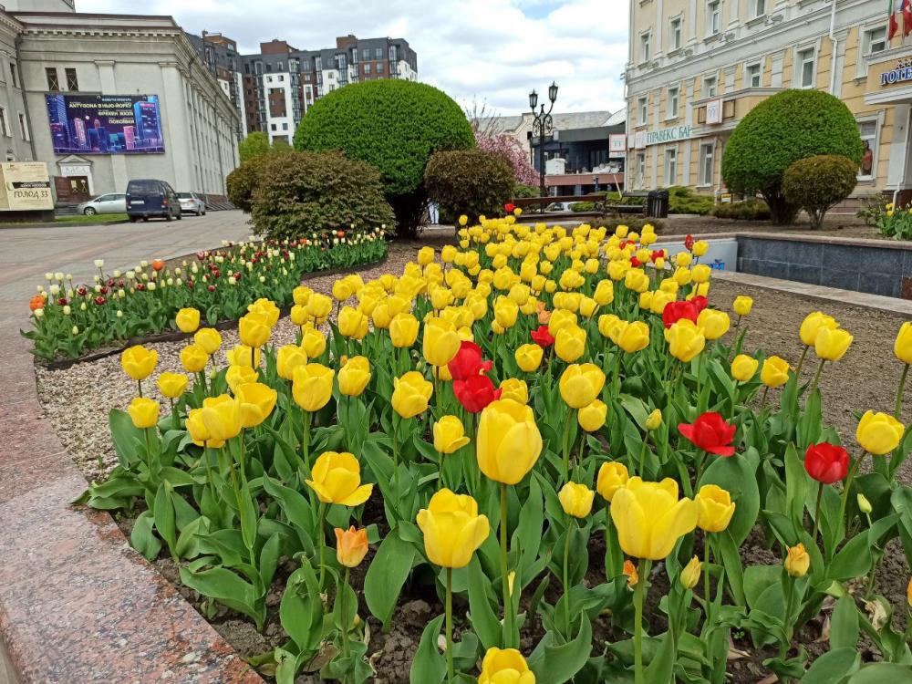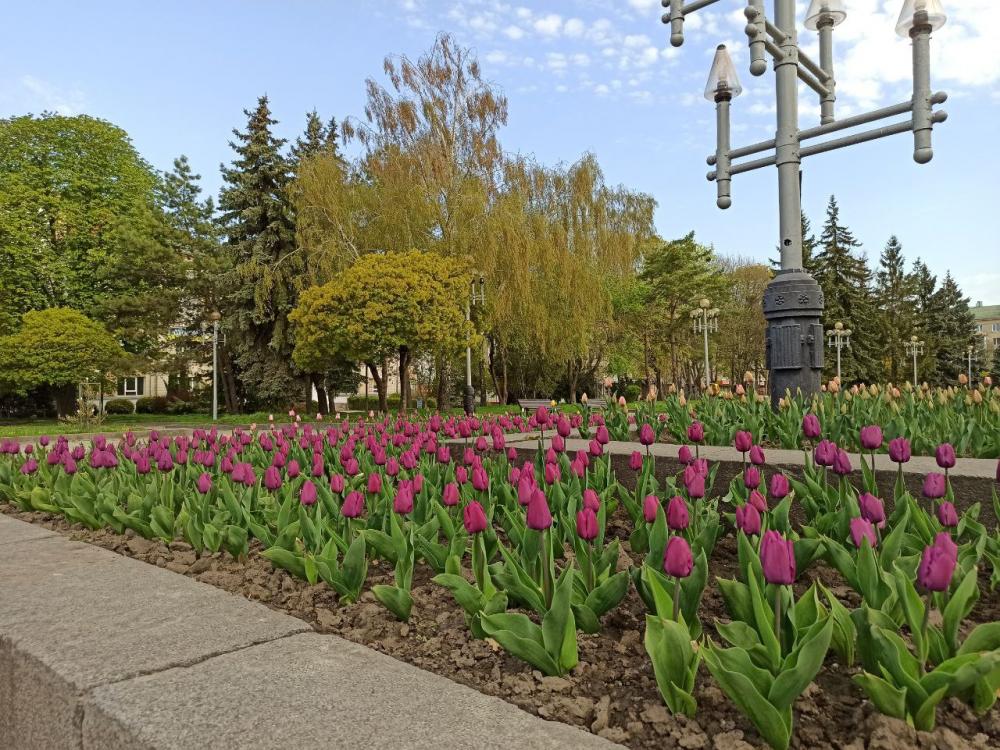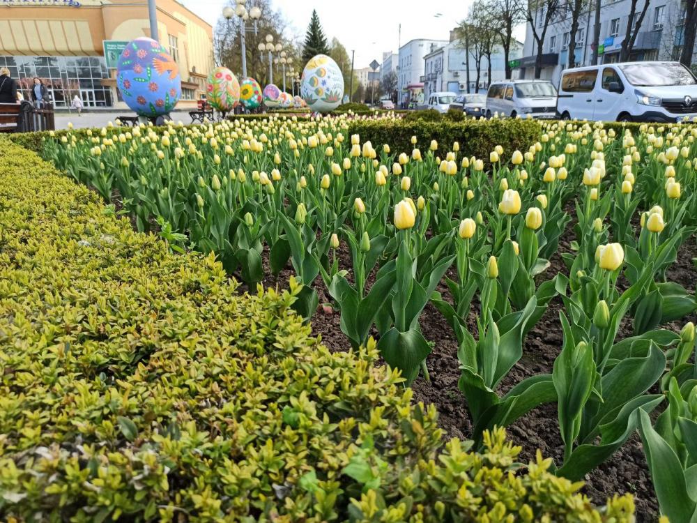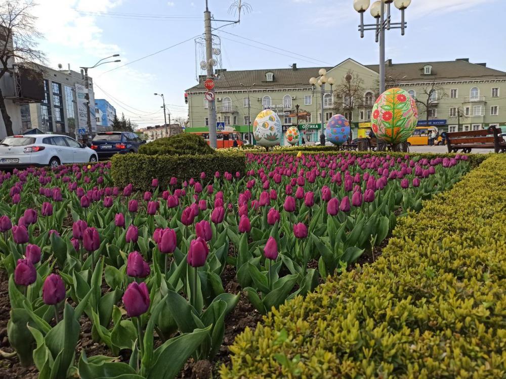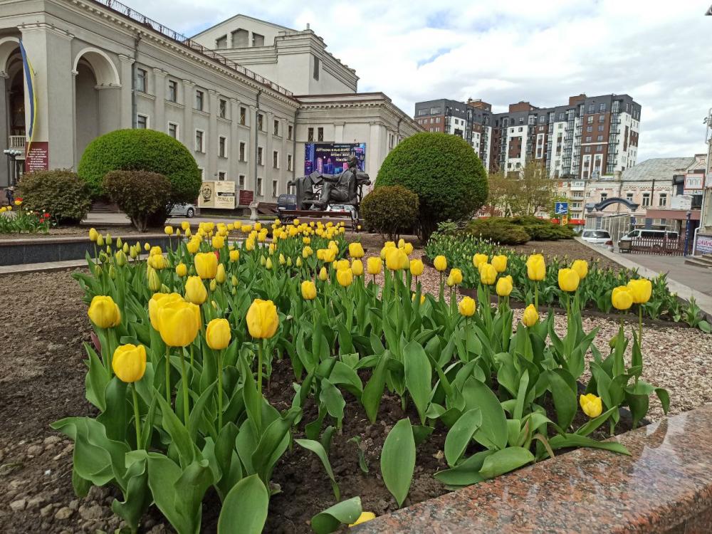У різних куточках міста розпочинають квітнути яскраві, різнобарві квіти. Ще трішки сонячної погоди і зацвітуть тюльпани усіх сортів.
