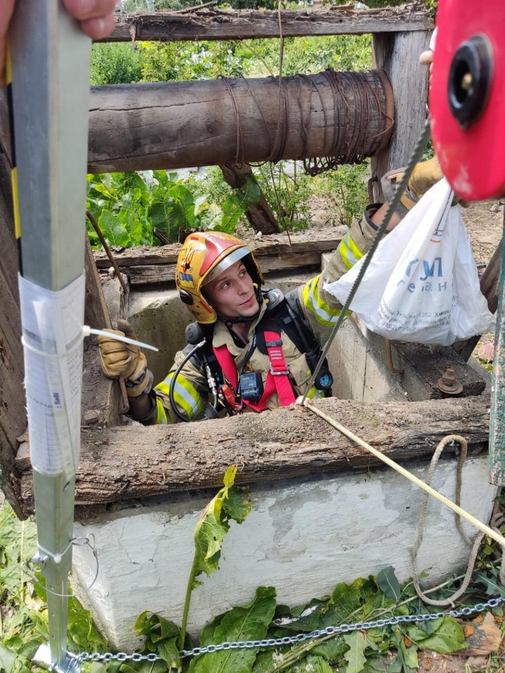 Співробітники 1-ї державної пожежно-рятувальної частини ГУ ДСНС надавали допомогу літній жінці по підняттю маленького кошеняти з 20-метрового колодязя, який був ненаповненою водою.