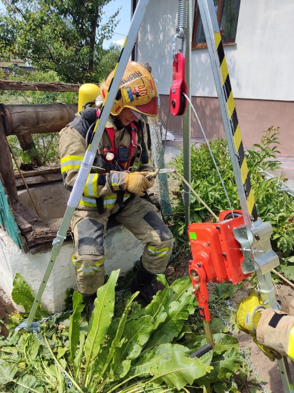 В Рівному, 22 липня приблизно о 14:00, по вулиці Новодвірська рятувальники допомогли літній жінці дістати з глибокого колодязя кошеня.
