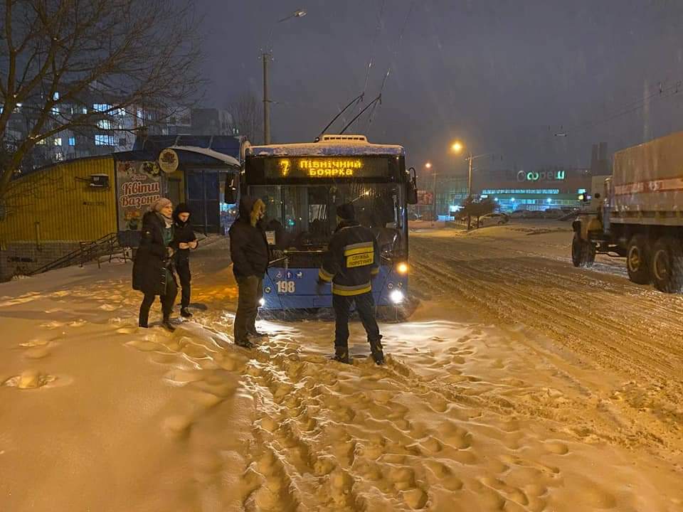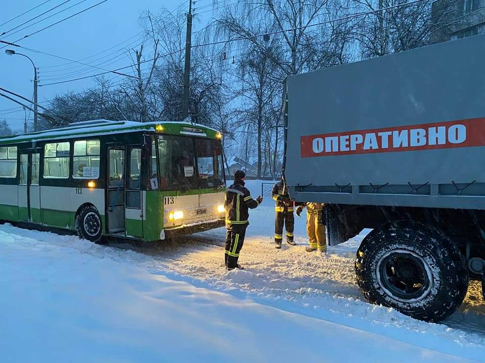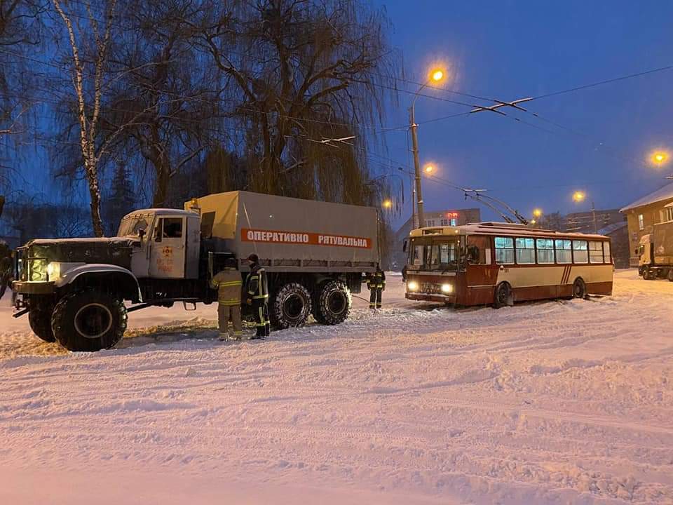 9 лютого о 07:00 рятувальники за допомогою спецтехніки важкої прохідності відбуксирували із снігових заметів два тролейбуса за маршрутом номер 1.
