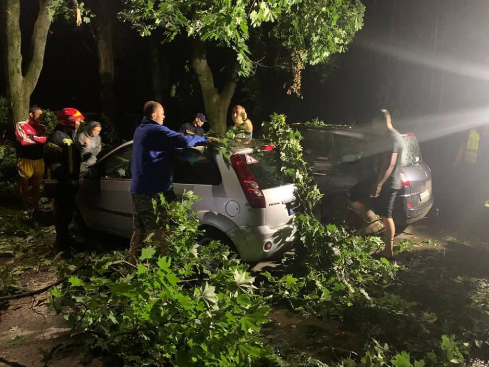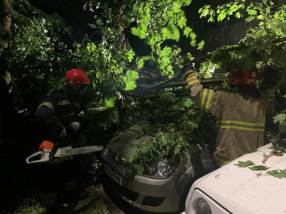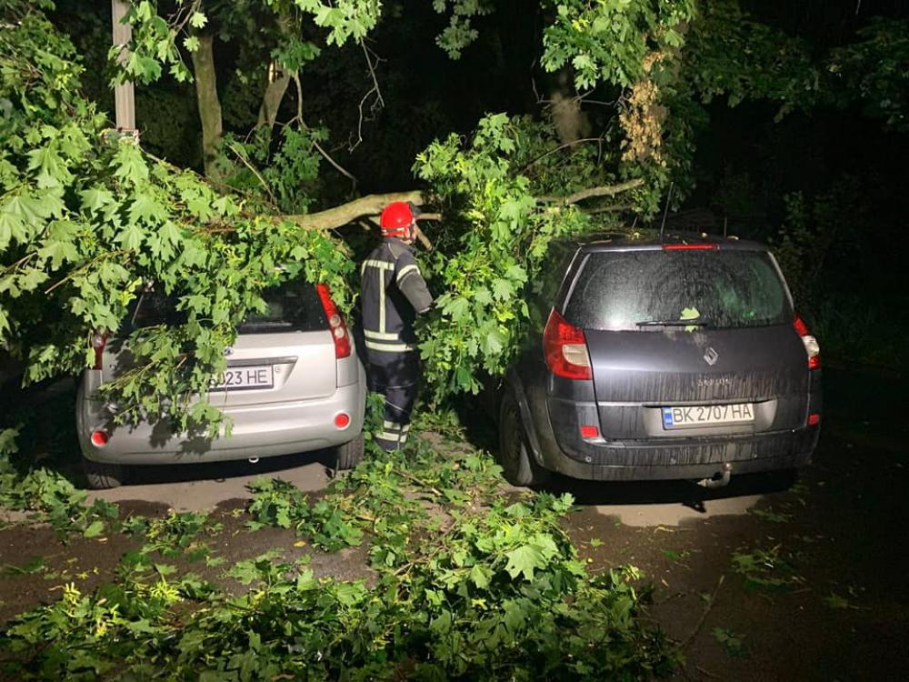 Сьогодні о 00.15 ночі до рятувальників надійшло повідомлення про те, що на вул. Київській через сильний вітер із грозою на три припарковані авто впало дерево.