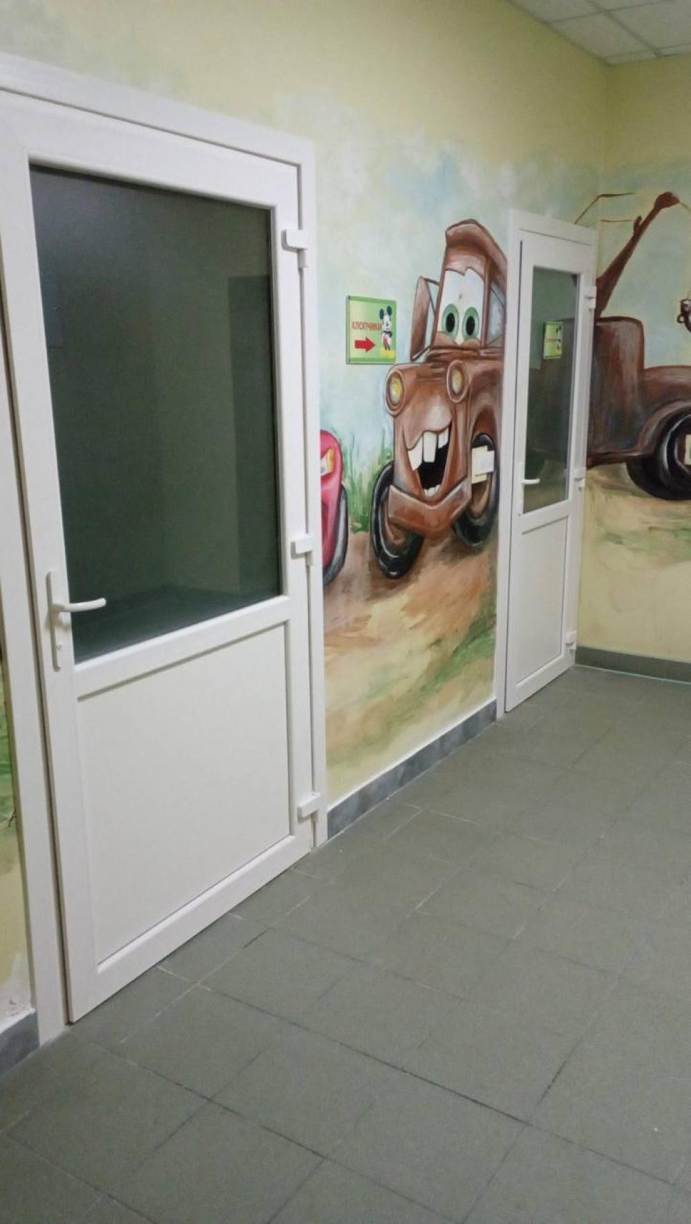 Нині в будівлі триває капітальний ремонт вхідної групи. Уже замінили центральні двері — раніше вони були завузькі, й людина на кріслі колісному не могла вільно проїхати. Також облаштовують нові пандуси на центральному та аварійному входах — із нормативним ухилом і поручнями. Біля сходів поклали тактильну плитку для людей з порушенням зору.