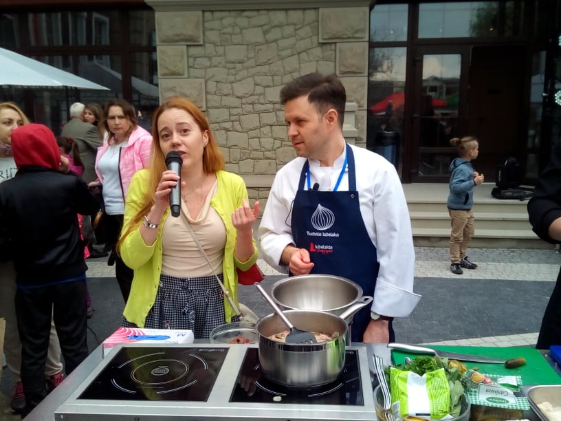 Разом із господинями з Полісся Павло Клімкін готував поліську страву вороб-юшку, а партнери з Любліна, разом із Андрієм Шараскіним люблінські страви - люблінський форшмак, цибуляж з пастами з копченої риби та зеленого горошку, пасту з копченої риби, пасту з зеленого горошку.