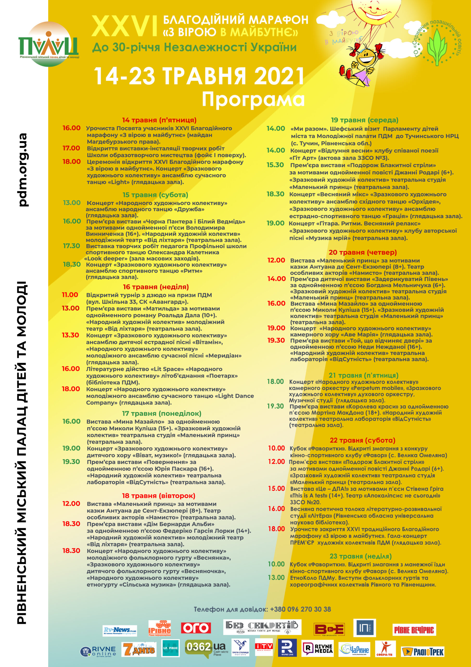 XXVІ традиційний Благодійний Марафон - 2021 «З вірою в майбутнє» відбудеться з 14 до 23 травня в рамках відзначення 30-річчя Незалежності України з метою соціальної і матеріальної підтримки обдарованих дітей з особливими освітніми потребами, що закінчують навчання в освітніх структурах ПДМ.