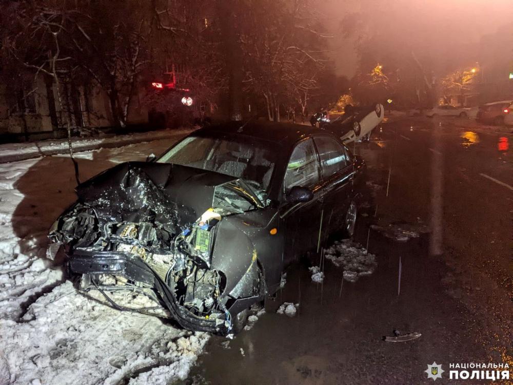 Поліцейські встановили, що 36-річний рівнянин, водій автомобіля «Skoda Oktavia», на смузі зустрічного руху зіткнувся з «Daewoo Lanos». Від удару «Skoda» перекинулась на дах.