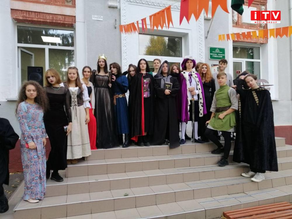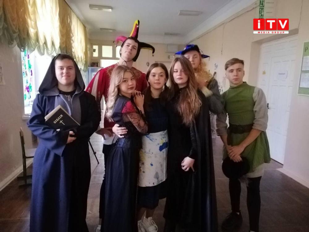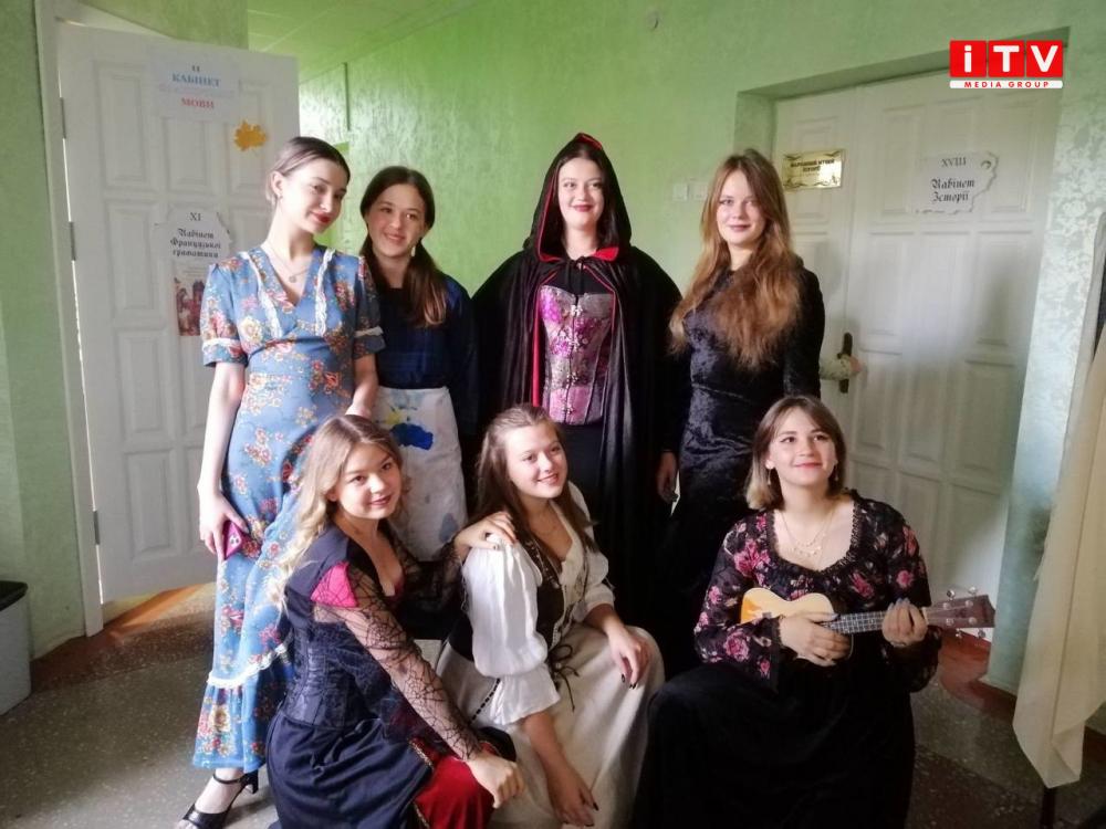 У такий оригінальний спосіб вже не перший рік учні 11 класів вітають педагогів. Готуються заздалегідь. Костюми відображають епоху. Цьогоріч темою обрали саме Середні віки. Тут і дами в пишних сукнях, і блазні, і монахи, і кати, і, звісно, Робін Гуд.