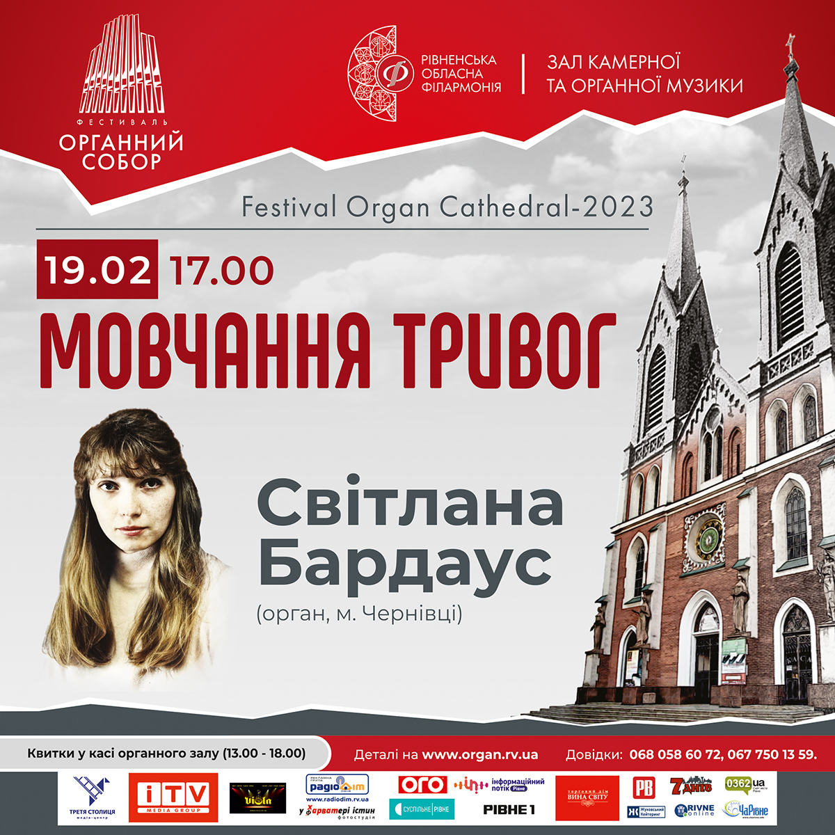 19 лютого у Рівненській обласній філармонії відбудеться «Мовчання тривог» Світлани Бардау (орган, м. Чернівці).