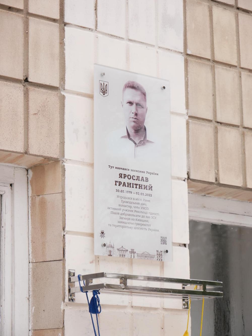 На фасаді Рівненського ліцею №8 відкрили меморіальну дошку на честь загиблого Героя України Ярослава Гранітного.