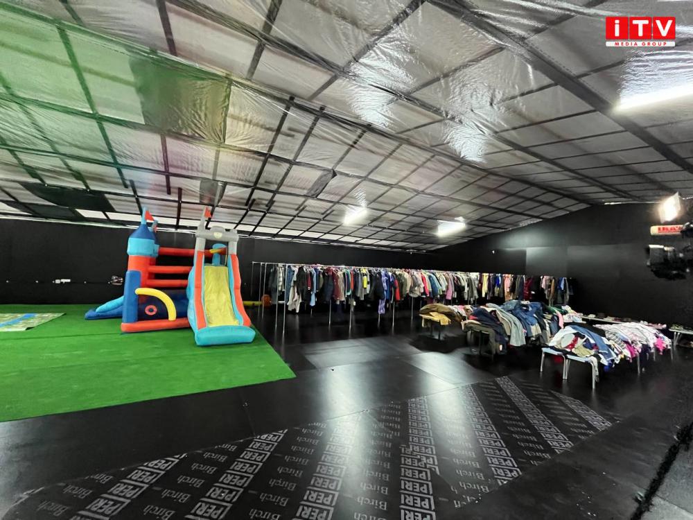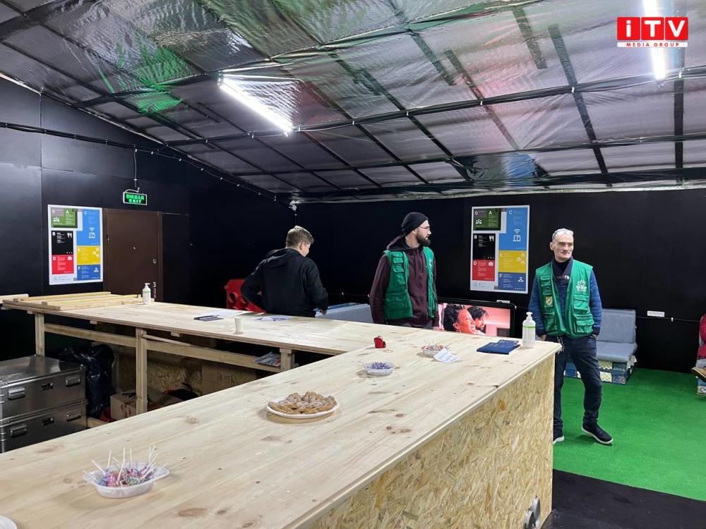 Гуманітарна база працює у великому наметі, що налічує п'ять вільних зон для українців.