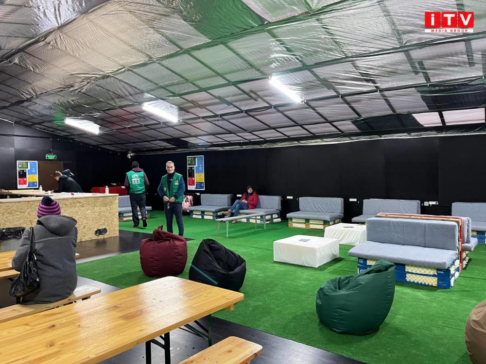 В іншій зоні працює хаб, де люди можуть відпочити, поспілкуватися та комфортно провести час. Також наявний куточок для роботи. Люди, які працюють дистанційно, за відсутності світла вдома можуть прийти у пункт та скористатися розетками та Wi-Fi.