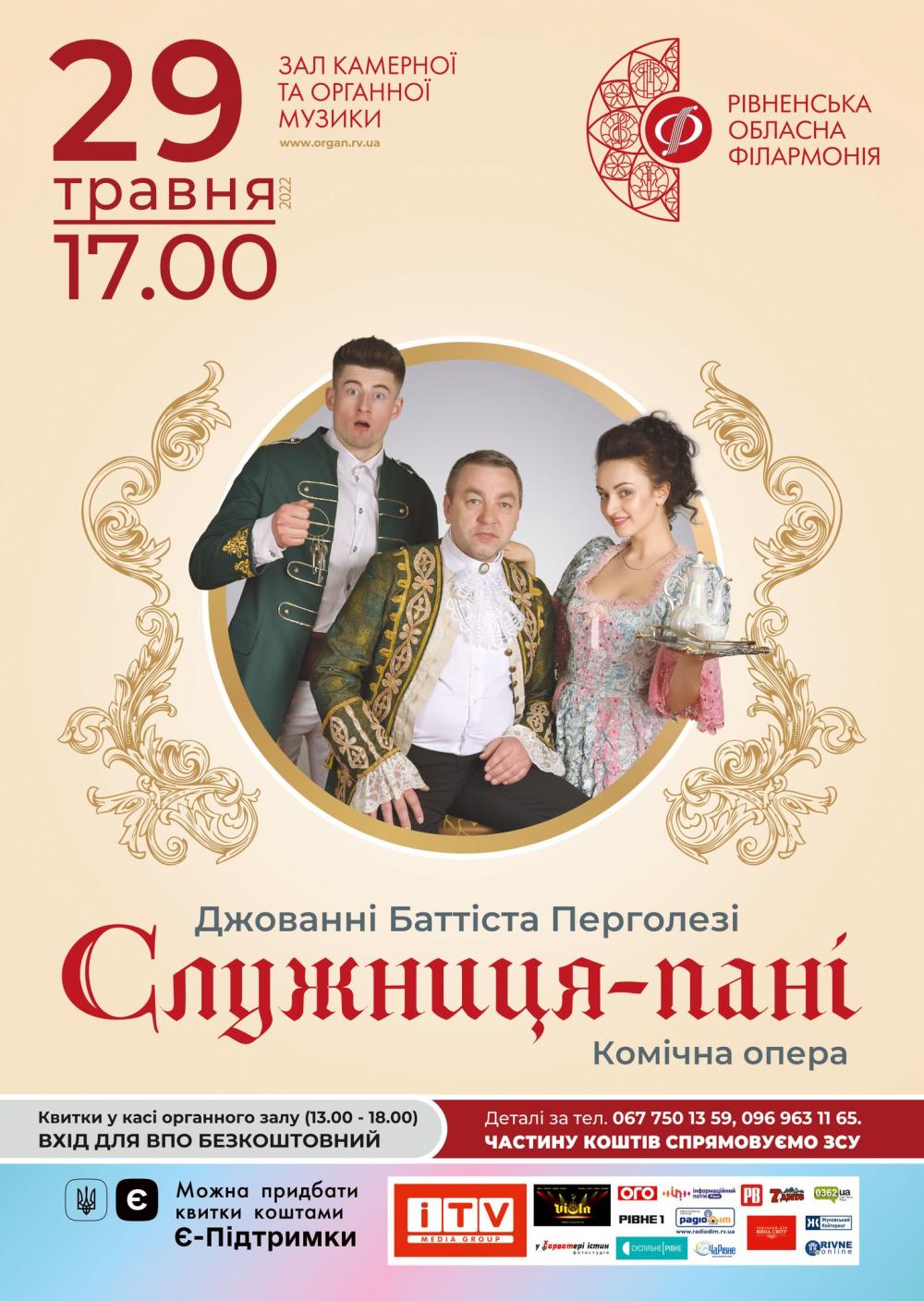 У Ріненській філармонії відновлють показ опери. «Служниця-пані» – це комічна опера італійського композитора Джованні Баттіста Перґолезі.