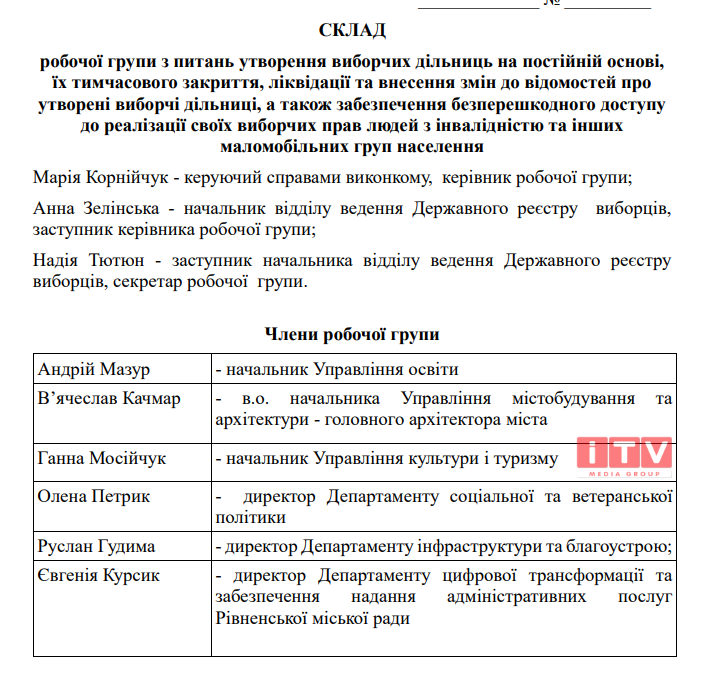 У Рівному створили робочу групу з питань утворення виборчих дільниць, їх тимчасового закриття, ліквідації та внесення змін до відомостей про утворені виборчі дільниці.