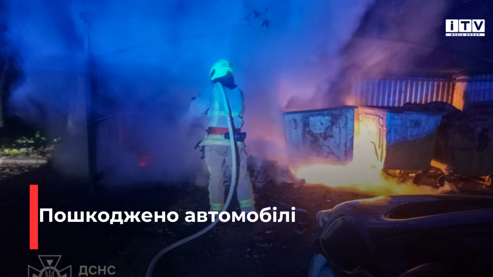 Внаслідок пожежі вогнем пошкоджено два сміттєвих контейнери та пластикові елементи 3-ох легкових автомобілів.