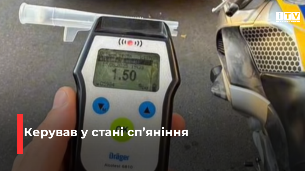 Під час спілкування інспектори помітили у нього ознаки алкогольного сп’яніння. Результат огляду за допомогою алкотестера показав 1,50 проміле.