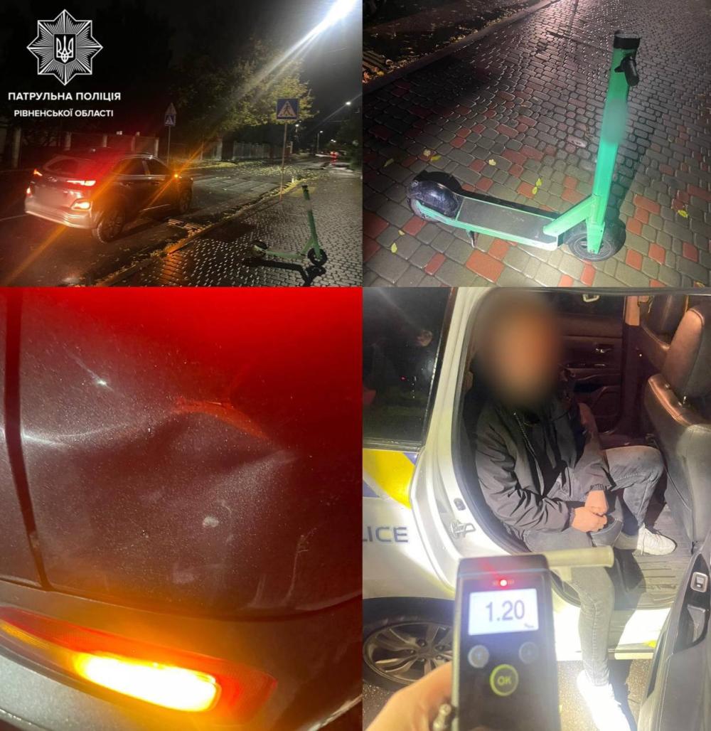 Патрульні склали адмінматеріали на нетверезого водія електросамоката, який скоїв ДТП у Рівному і залишив місце події.