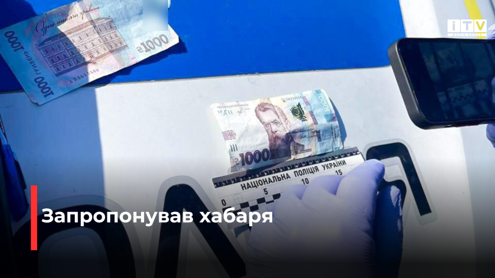 Під час перевірки автомобіля «Volkswagen Golf», поліцейські помітили у водія ознаки алкогольного сп’яніння. Однак чоловік відмовився від проходження огляду. Під час складання протоколу порушник запропонував неправомірну вигоду та поклав 2000 гривень на сидіння службового авто.