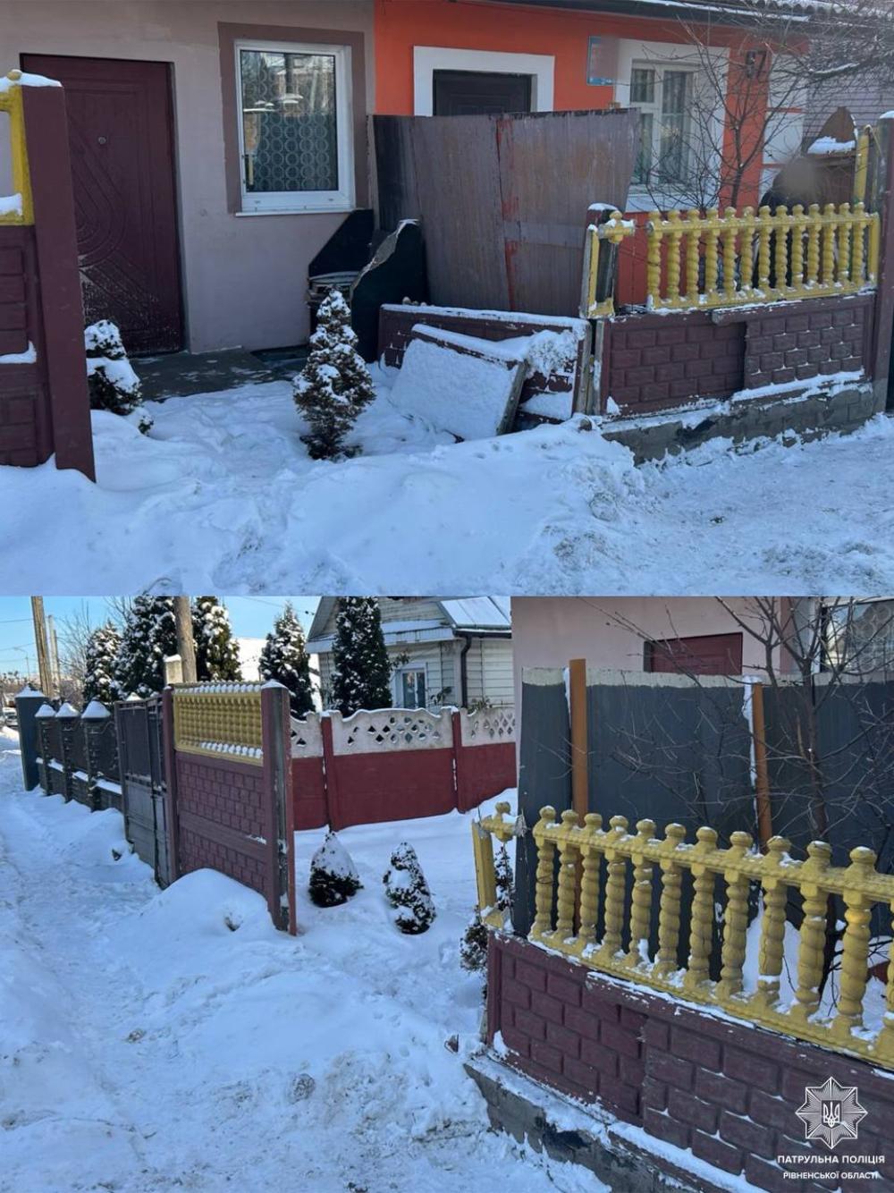 15 лютого до поліції звернулася рівнянка, яка повідомила, що почула гучний шум, після чого виявила пошкоджений бетонний паркан біля свого будинку та у сусідів.