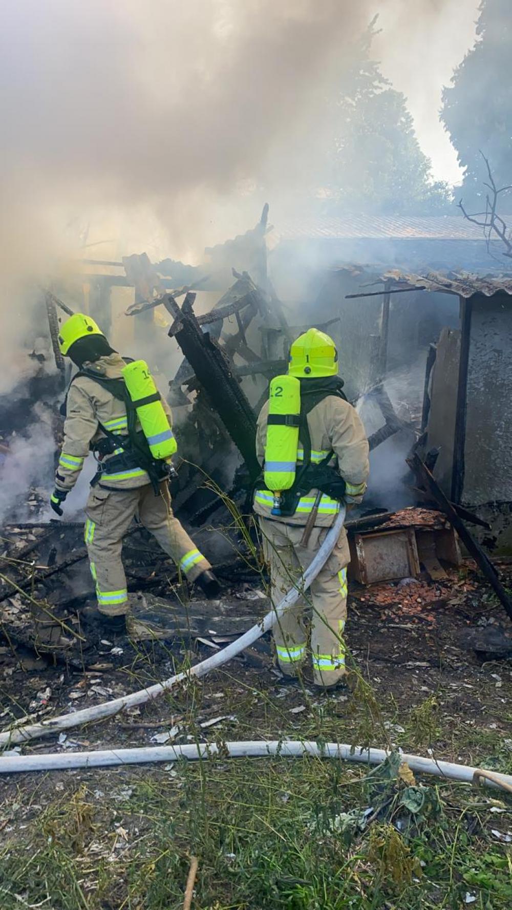 Прибувши за вказаною адресою рятувальники встановили, що горить приміщення 2 автогаражів. Через сильне полум’я існувала загроза поширення вогню на поряд розташований ще один автогараж.