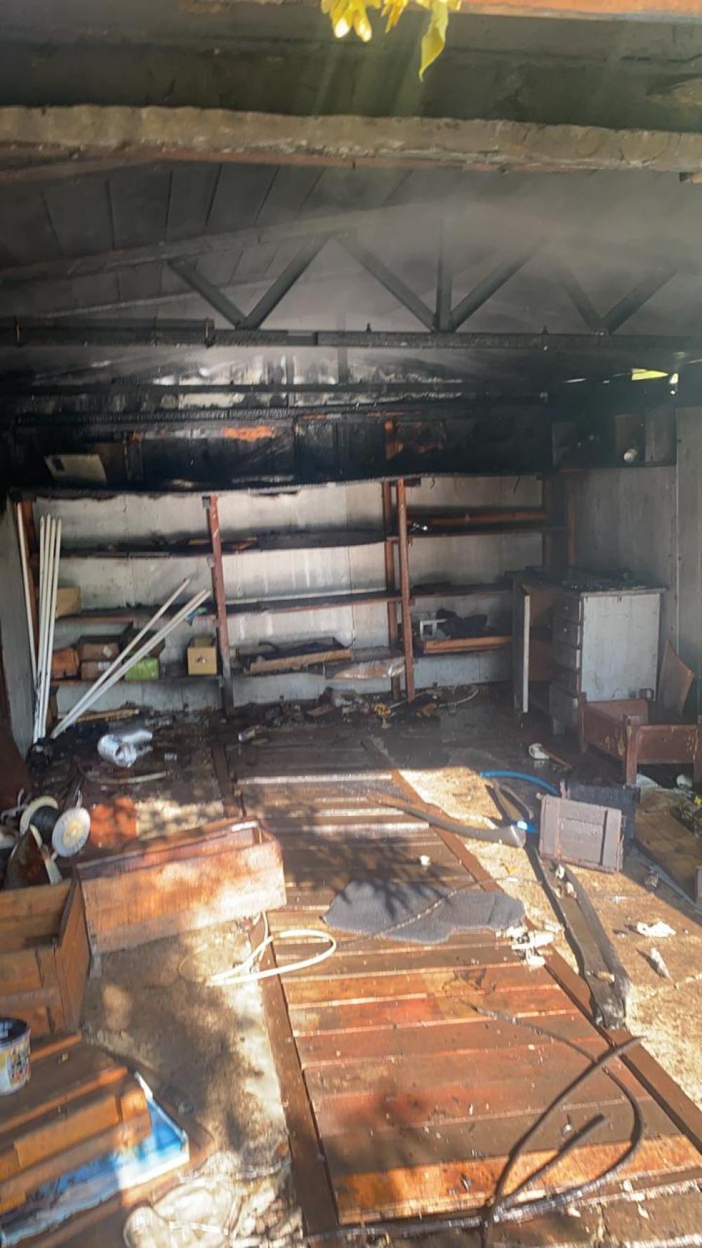 Вогнем знищено перекриття та покриття 2 автогаражів, та врятовано поруч розташовані автогараж. Транспортні засоби не пошкоджені.