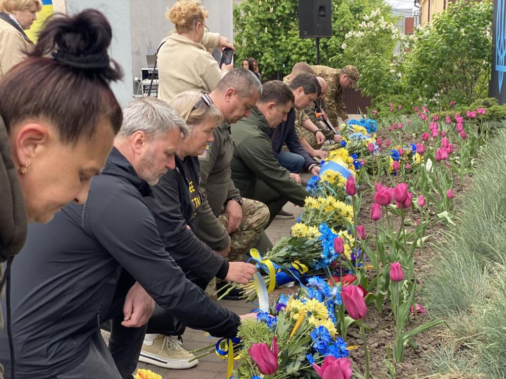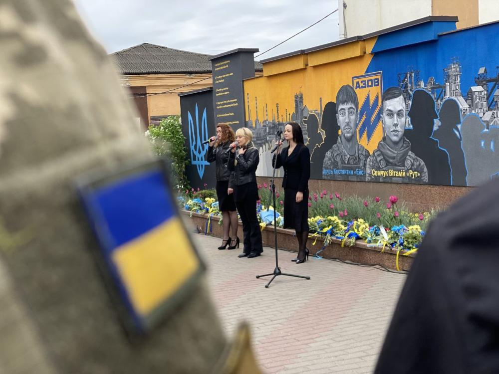З цієї нагоди поклали квіти до муралу, присвяченому жителям Рівного Костянтину Друзю та Віталію Семчуку, які служили у цьому підрозділі. Вони разом з побратимами до останнього подиху тримали оборону Маріуполя та комбінату Азовсталь.