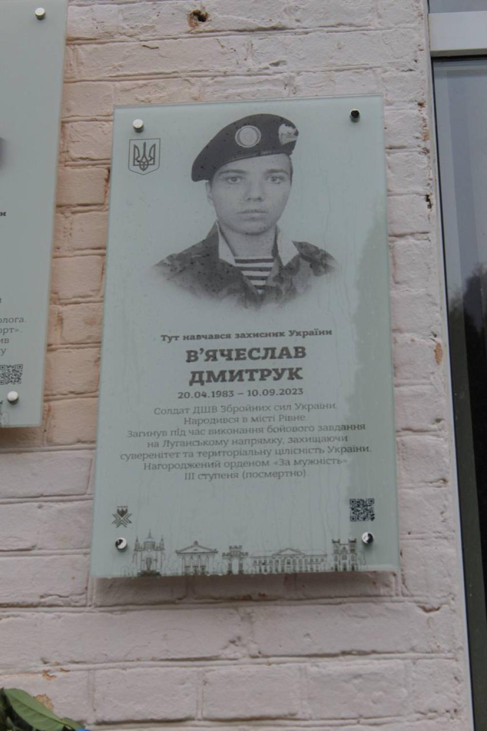 На фасаді Рівненської гімназії №6 відкрили меморіальну дошку на честь загиблого Героя – В'ячеслава Дмитрука