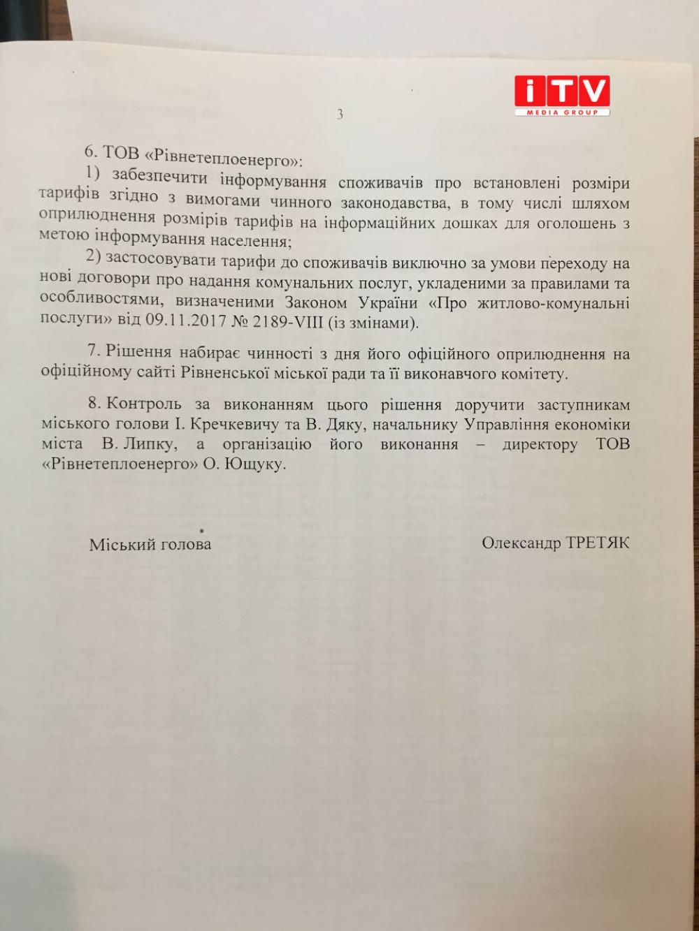 "В рамках переговорів з Рівнетеплоенерго було досягнуто компромісів і оптимізації по певних параграфах і пунктах. Тому сьогодні ми виходимо на рівень 2.7 (2725,45 ред.) Варто зазначити, що для бюджету у нас одна з найнижчих позицій в Україні", - зазначив міський голова Рівного Олександр Третяк.