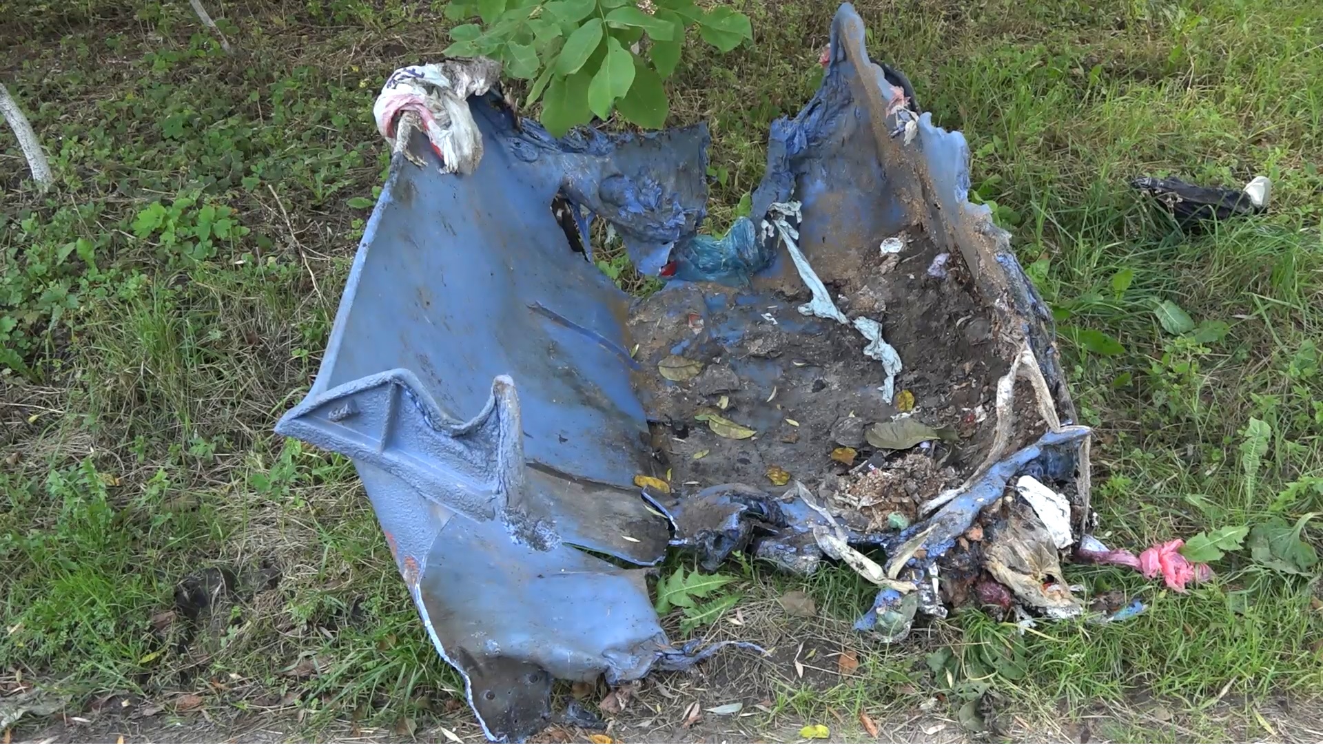 Це все, що залишилося від сміттєвого контейнера по вулиці Ботанічна. Він згорів увечері 15 серпня. Через два дні комунальні служби прибирають наслідки пожежі. Майстриня КАТП-1728 Наталія Антонюк говорить, що контейнер підпалили. Відновленню він не підлягає. На цьому місці, додає жінка, підпалюють контейнер вдруге. Такі ж підпали фіксують по всьому місту.
