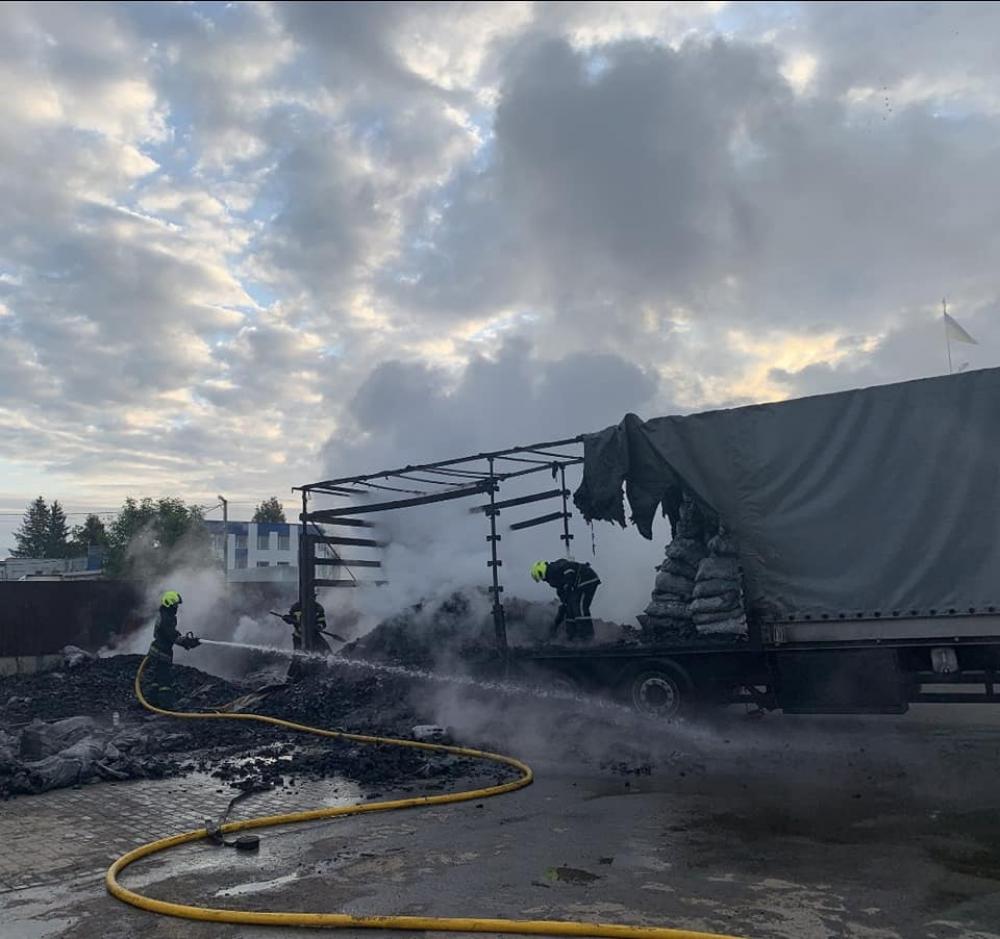 На місці події вогнеборці встановили, що горить напівпричіп вантажного автомобіля «VOLVO» з деревним вугіллям.