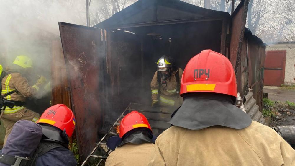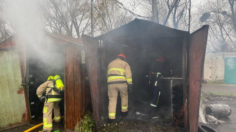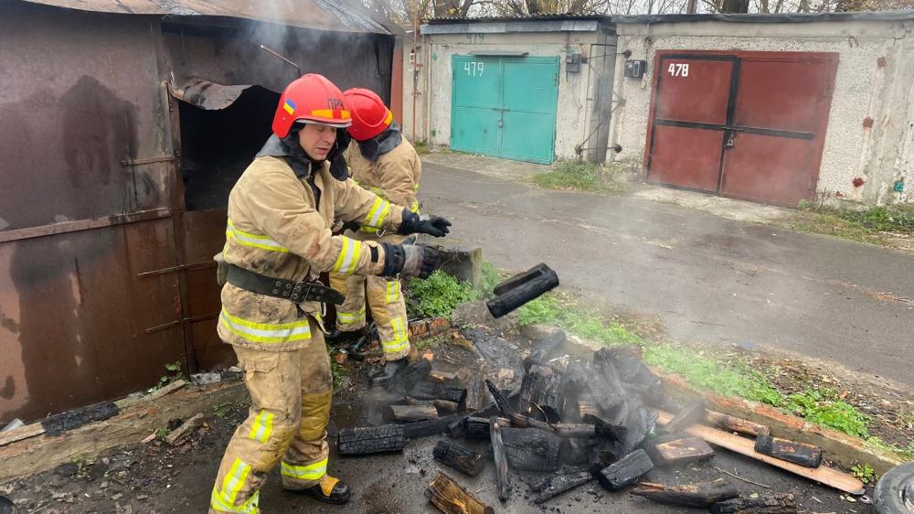 За допомогою бензоріза рятувальники відкрили двері металевого гаражна та ліквідували пожежу.