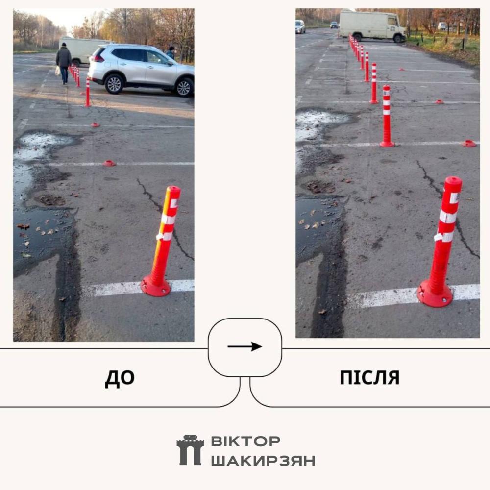 Також комунальники вирівняли антипаркувальні й обмежувальні стовчики та відремонтували огородження вздовж проїжджої частини