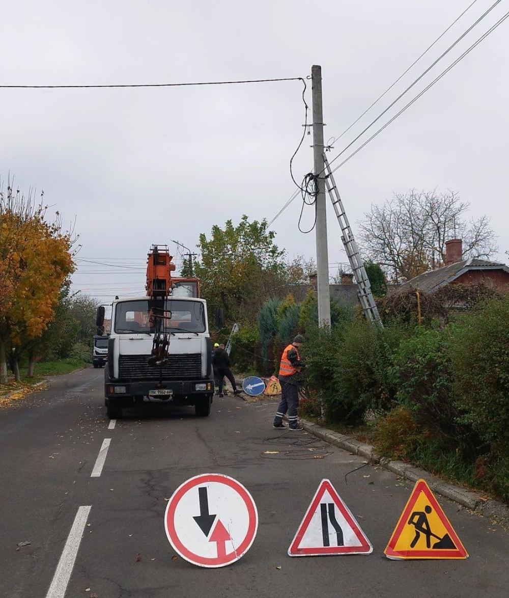 Пошкоджену опору працівники КП "Міськсвітло" демонтували та встановили на її місце нову, відновили обірвані проводи та встановили світильник вуличного освітлення.