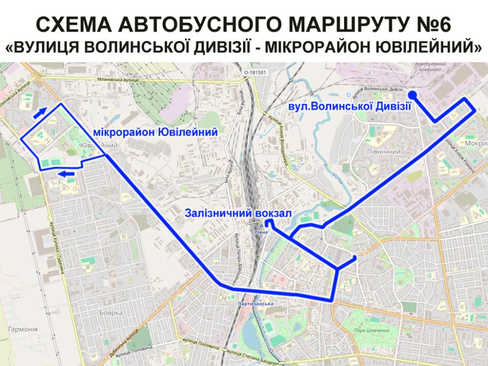 Наразі курсують два автобуси за маршрутом №6 "вулиця Волинської Дивізії - мікрорайон Ювілейний".