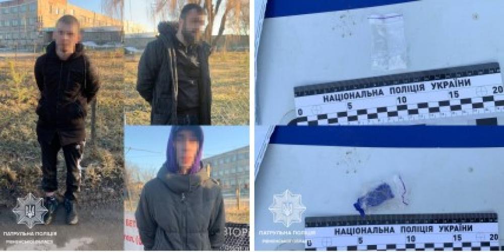 27, 17 та 37-річних чоловіків поліцейські затримали. Під час поверхневої перевірки виявили невідому порошкоподібну речовину, зовні схожу на наркотичну, а також пристрій, ймовірно, для її вживання.