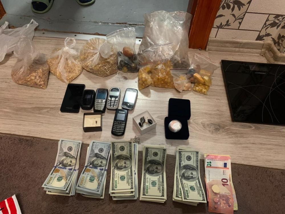 У них виявили та вилучили 10 пакетів із обробленим камінням бурштину, 4700 доларів і 380 євро, засоби зв'язку та інші речові докази, які мають суттєве значення у справі.