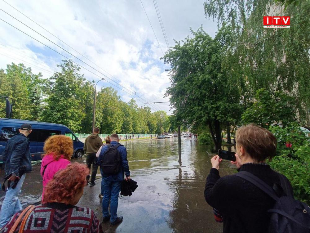 Як повідомляє кореспондент телеканалу ITV media group, на вулиці Відінській зупинились тролейбуси. Люди, які були в транспорті повиходили та чекають, коли рух відновиться. Тут, окрім дороги, затопило і тротуар.