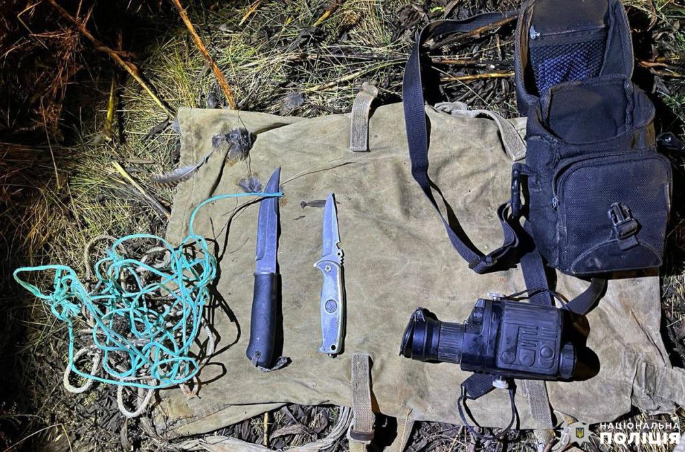 Слідчо-оперативна група під час огляду місця події виявила рюкзак із орієнтовно 10 кг м’яса добутої ними косулі, впольованого птаха, а також 10 патронів, 2 ножі і тепловізор. Крім того, неподалік поліцейські виявили й шкуру із хутряним покривом дичини.