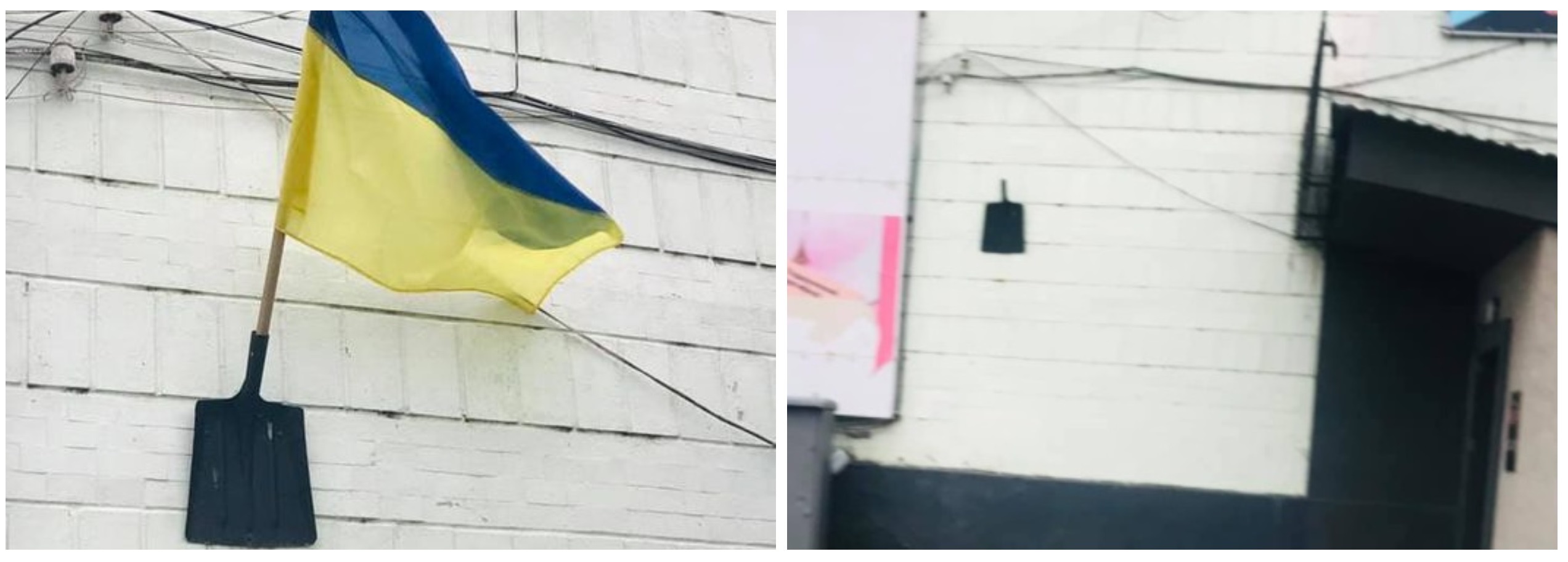 Нагадаємо, що з приводу прапору, який висів на лопаті, у соціальних мережах розгорівся скандал. Одні були обурені таким рішенням, інші ж не вбачали у цьому злочину:
