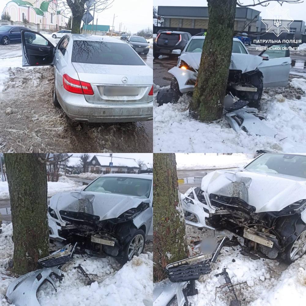 28 січня у Сарнах на вулиці Костопільській водійка автомобіля Mercedes-Benz не обрала безпечної швидкості руху, не впоралася під час повороту з керуванням та в'їхала у дерево.