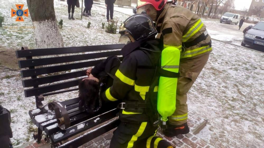 Двері у квартиру були зачинені, тому рятувальники застосували спецінструмент, щоб їх відкрити. В середині вщент задимленої оселі співробітники ДСНС виявли напівпритомну жінку. Її негайно винесли на свіже повітря та до приїзду швидкої медичної допомоги, надавали долікарську допомогу.