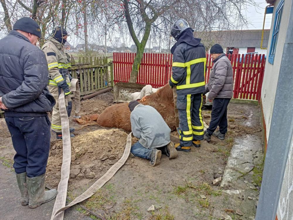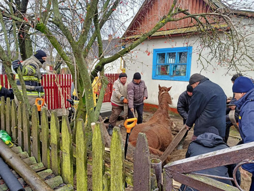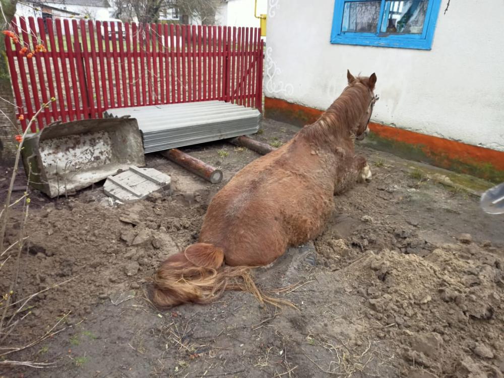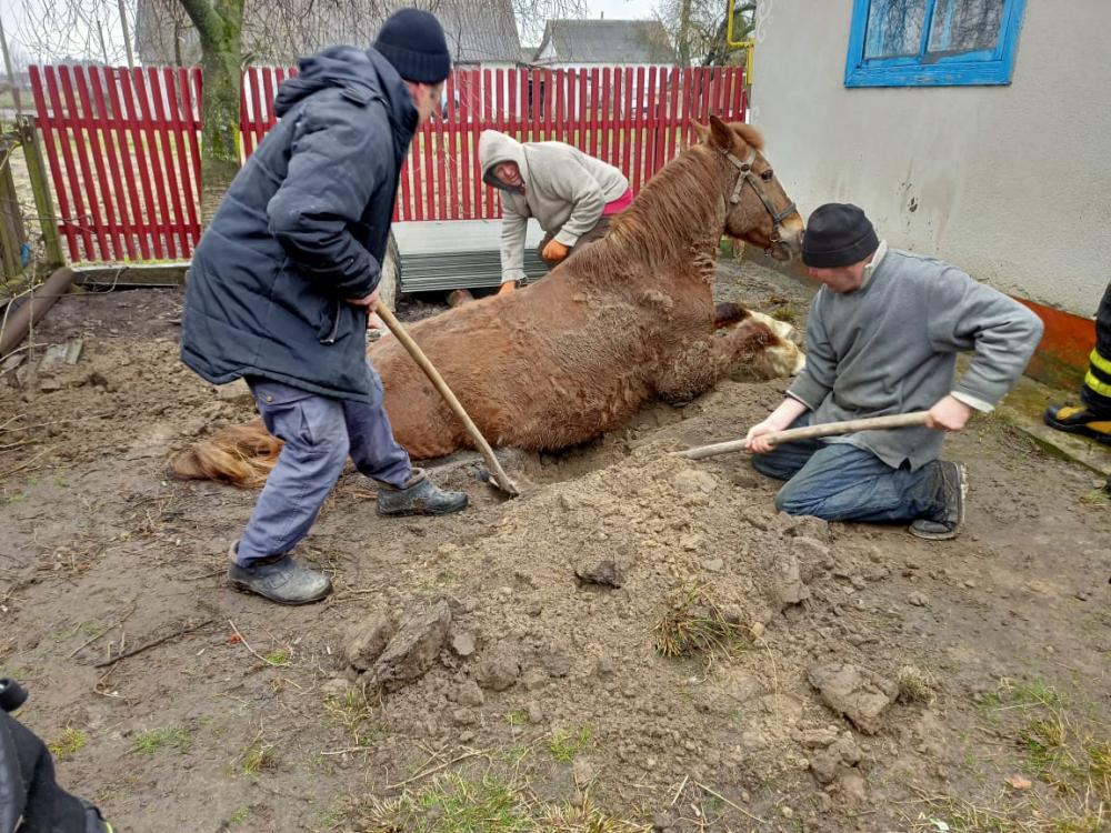 6 квітня до рятувальників від громадян надійшло повідомлення про те, що в селі Костянтинівка Сарненського району провалився в септик свійський кінь. Самотужки люди тварину підняти не змогли.