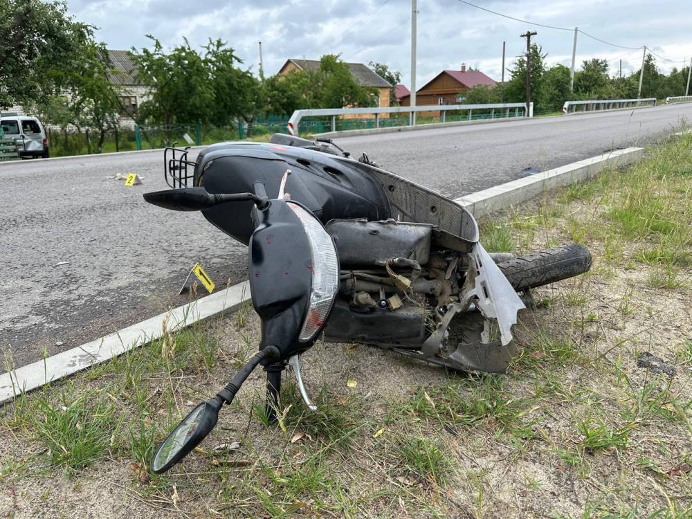 Поліцейські на місці події встановили, що 34-річна водійка «Citroen Berlingo» повертала ліворуч на подвір’я свого господарства, як у задню частину авто врізався скутерист.