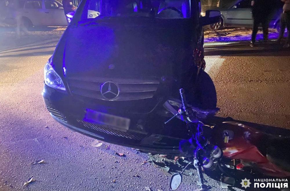 Встановлено, що водійка автомобіля «Mercedes-Benz Vito», 34-річна місцева жителька, здійснюючи розворот, не надала перевагу в русі та допустила зіткнення з мотоциклом «Skymoto Bird» під керуванням 18-річного односельчанина.