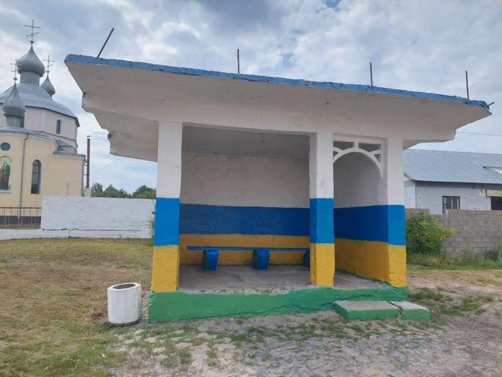 У селах на Сарненщині люди розфарбували зупинки громадського транспорту.
