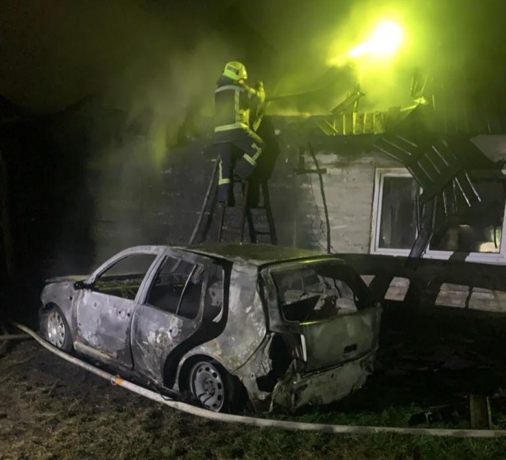Вогнем знищено легковий автомобіль. Вогнем пошкоджено 15 м.кв покрівлі та 10 м.кв. стіни житлового будинку.