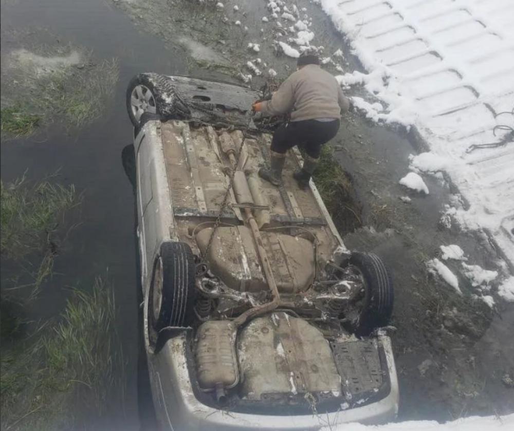 Як повідомляють у спільноті, водій автівки їхав на літній гумі та злетів з дороги.