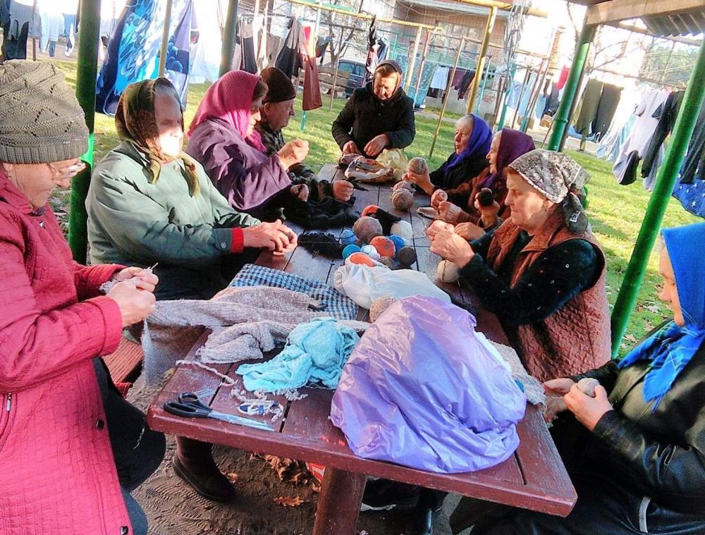 "Ми не вміємо в'язати спицями, тому торочимо речі і передаємо вже готові клубки ниток туди, в Стару Миколаївку. А там вже майстрині в'яжуть шкарпетки", - кажуть жінки.